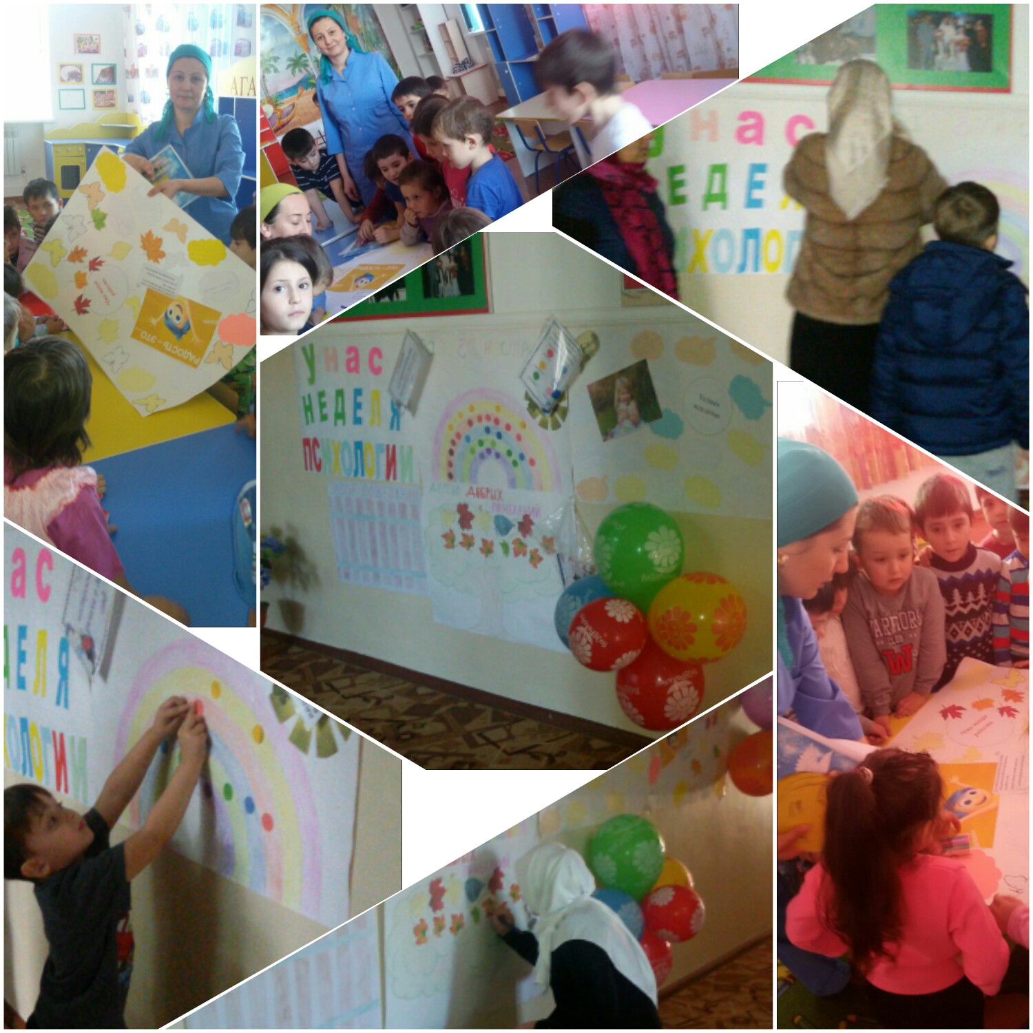 Цель: формирование общего настроения оптимистической тональности, настрой на «психологическую волну»; стимулирование интереса к психологическим знаниям и работе психолога у детей, педагогов, родителей, администрации, сотрудников ДОУ; создание благоприятного психологического климата в детских и взрослых коллективах.